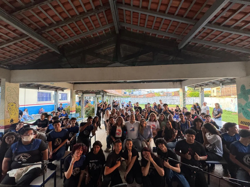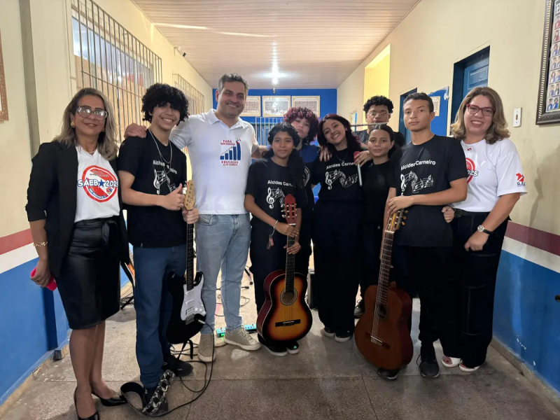 Durante o encontro, estudantes leram uma carta de agradecimento ao secretário, destacando a emoção e o reconhecimento pela presença em uma visita inédita às escolas, além da recepção musical com a banda formada pelos estudantes da Escola Ministro Alcides Carneiro.