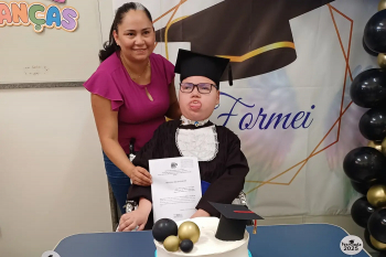 Beca, canudo, certificado e muita comemoração. Tudo como "manda o figurino" para celebrar a formatura de Luan Gabriel Castro, 15 anos, que concluiu o Ensino Fundamental, e vai cursar o Ensino Médio em 2026. Luan é paciente do Hospital Regional do Baixo Amazonas Dr. Waldemar Penna (HRBA), em Santarém, oeste do Pará, e está internado na unidade desde 2011. O adolescente tirou fotos com a mãe, professores e profissionais da unidade, registrando mais essa conquista.