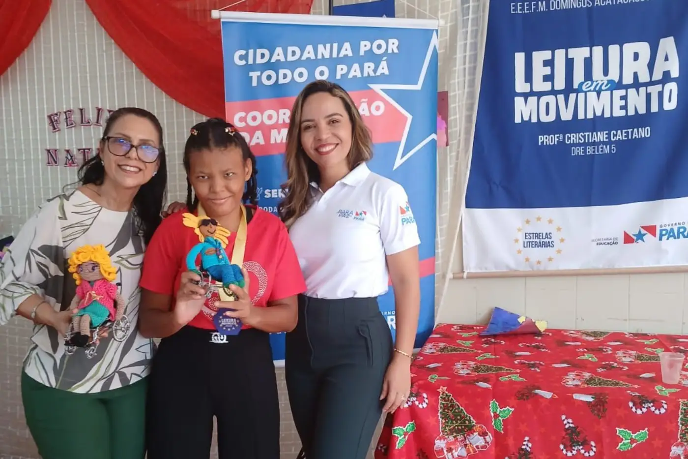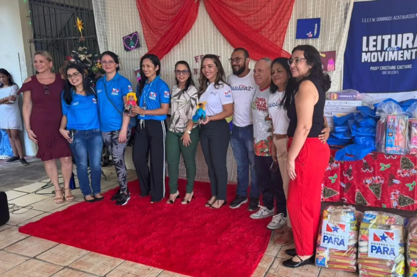 A Escola Estadual Domingos Acatauassu Nunes, no bairro do Marco, em Belém, foi palco de uma grande comemoração de Natal, marcada por ações de solidariedade, cuidado e conscientização, na terça-feira (16). A iniciativa foi promovida pela Coordenação da Mulher do Parapaz, em parceria com o projeto ‘Leitura em Movimento’.
