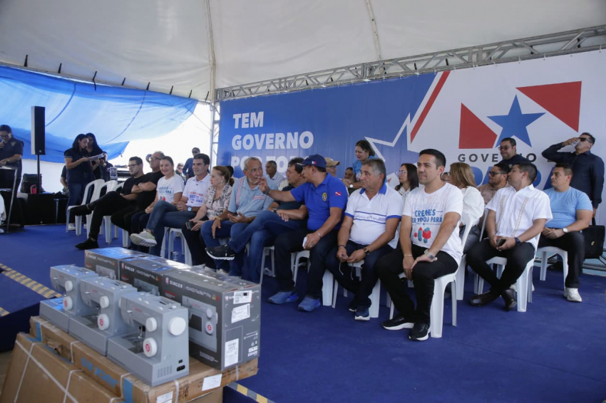 Projeto Moda Marajoara - Durante a agenda, foram entregues ainda 40 máquinas de costura, por meio do projeto Moda Marajoara, uma iniciativa do governo do Estado que engloba três órgãos do Sistema S - Senai, Senar e Sebrae - com foco na capacitação de mulheres para a produção de camisas marajoaras.