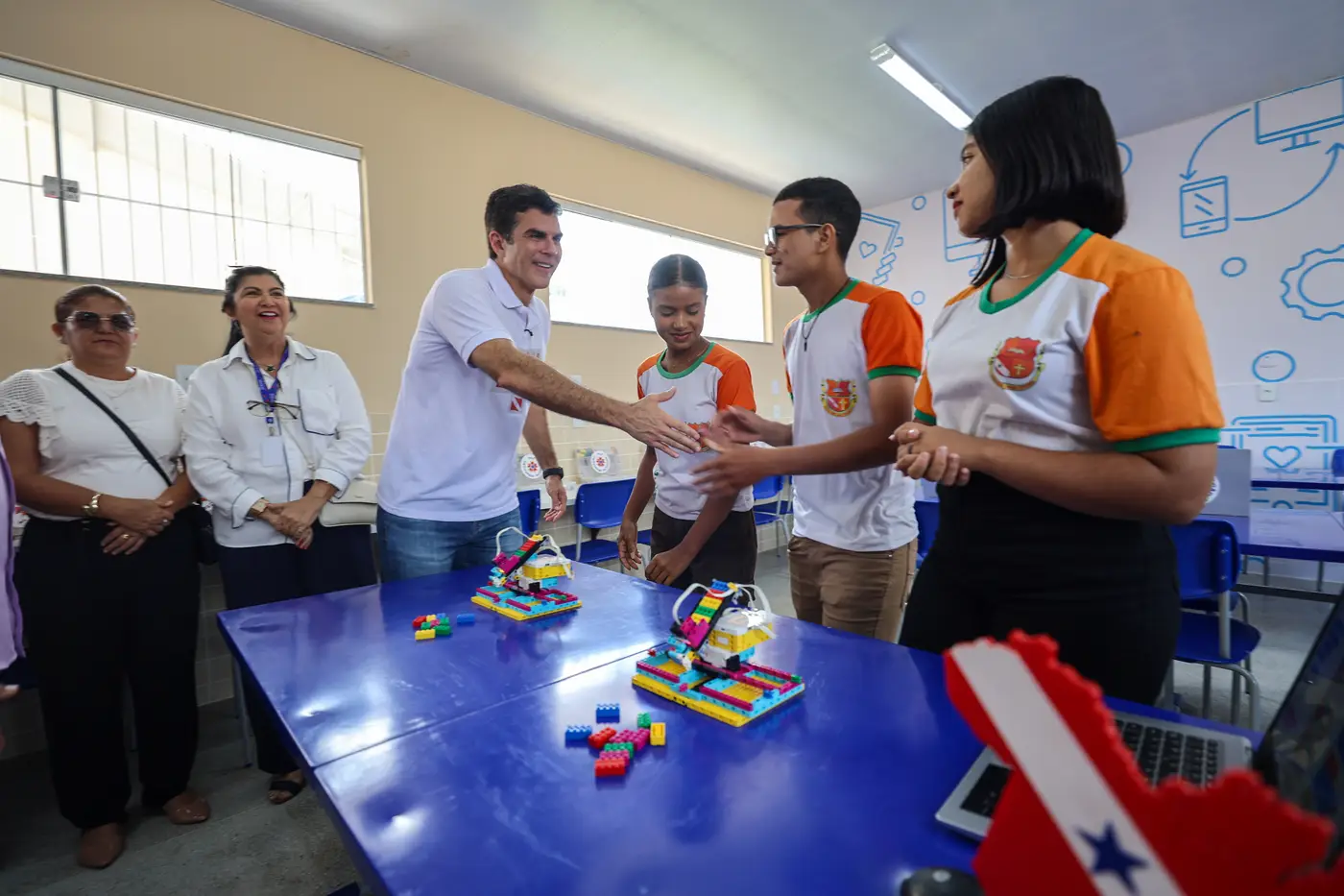 A entrega foi realizada pelo governador do Estado, Helder Barbalho, e a secretária-adjunta de Logística da Seduc, Sandra Kassumi Kyushima, que representou o secretário estadual de Educação, Ricardo Sefer.