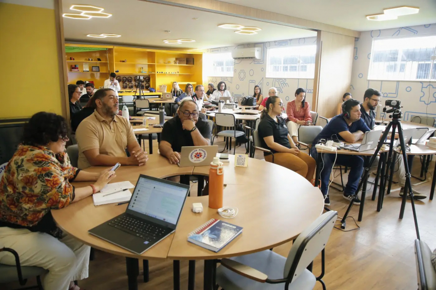 O encontro promovido pela Seduc, entre os dias 23 e 25 de fevereiro, no Centro de Inovação, instalado na Escola Cordeiro de Farias, foi coordenado pelo Ciseb em parceria com a Fundação Telefônica Vivo, reunindo 40 formadores presenciais, além de participantes de diversas regiões do Pará, com participação on-line.