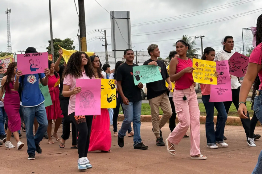 Cerca de 500 alunos da Escola Estadual de Ensino Médio Integral Dr. Gabriel Sales Pimenta participaram, nesta sexta-feira (6), de uma caminhada pelas ruas do núcleo Morada Nova, em Marabá, no sudeste do Pará, em alusão ao Dia Internacional da Mulher, celebrado em 8 de março.