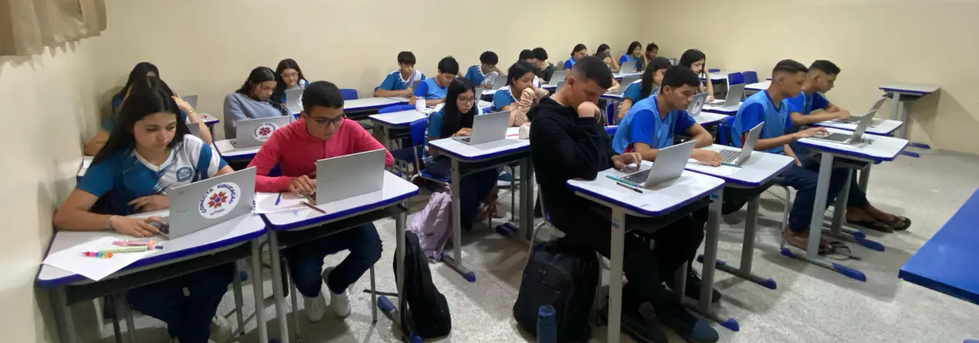 Além disso, foram instaladas antenas de internet via satélite em todas as escolas e anexos rurais, totalizando 1.650 unidades escolares conectadas, ampliando o acesso à internet e às ferramentas digitais no ambiente educacional.