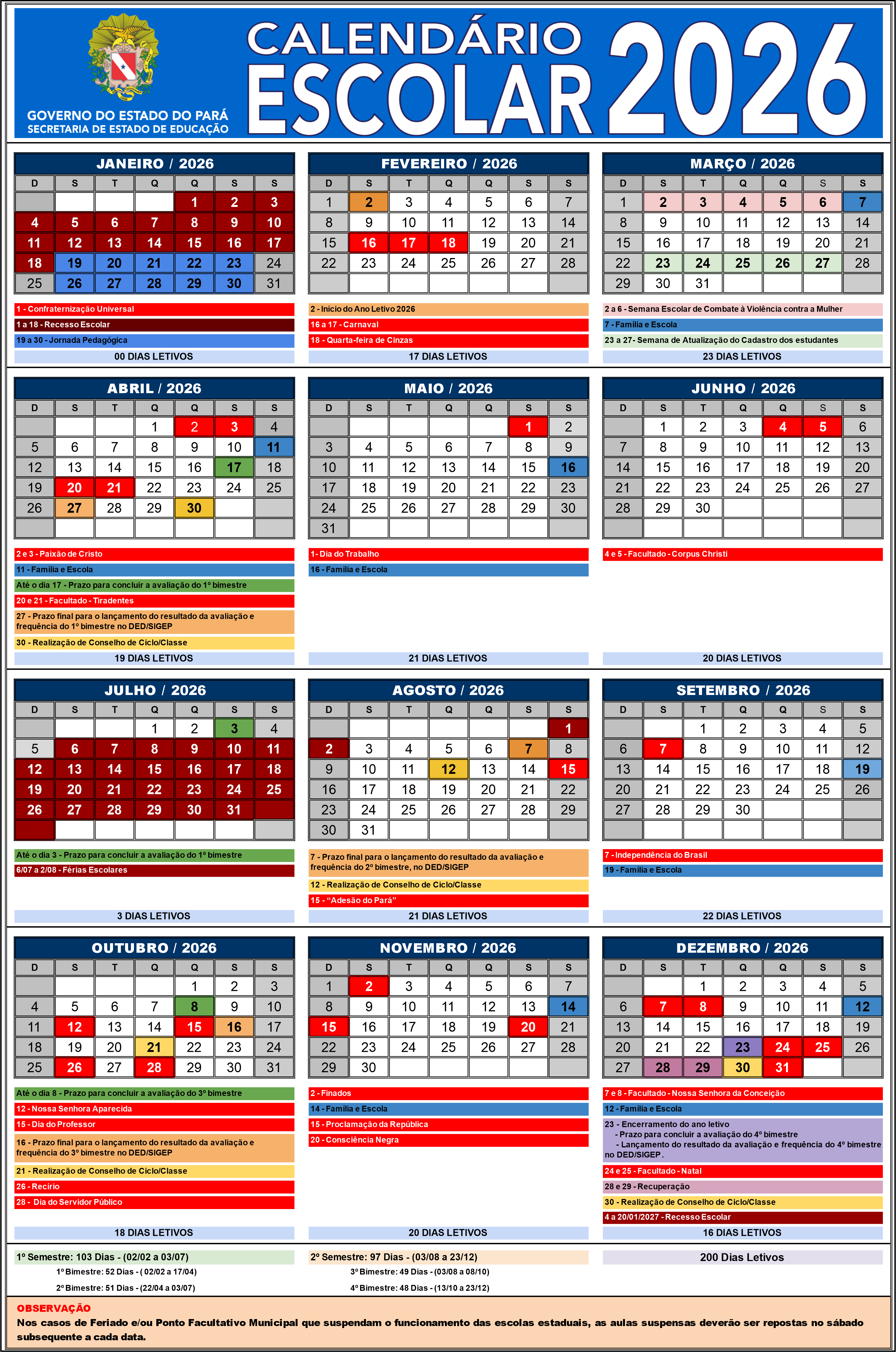 Calendário Letivo 2026